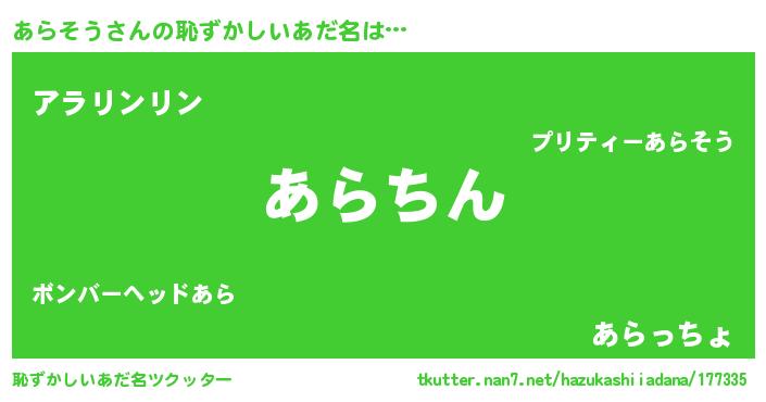 | ヘコむあだ名 | 『あらそう(震え声)』『あらを』 |