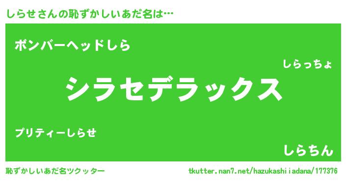| ヒーロー風カッコイイあだ名 | 『仮面シラダー』『超時空戦士シラセ』 |
