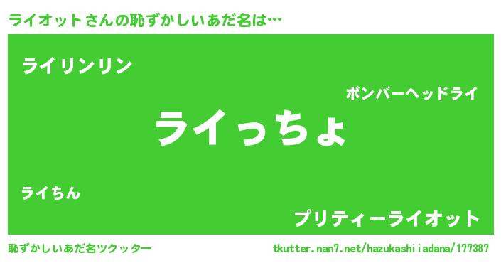 | ヘコむあだ名 | 『豆乳』『ライっぺ』『ライにゅー』 |