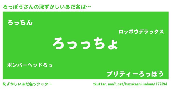 | ファンタジー風あだ名 | 『エターナルロッポウー』『ロッフェル』 |