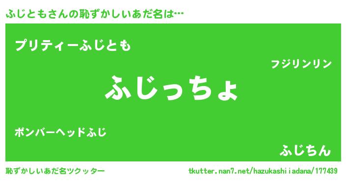 | 男性向けラノベタイトル風あだ名 | 『フジトモスレイヤー』『ふじともの憂鬱』 |
