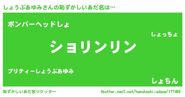 | 意味不明あだ名 | 『とにかく怪しいしょうぶあゆみ』 |
