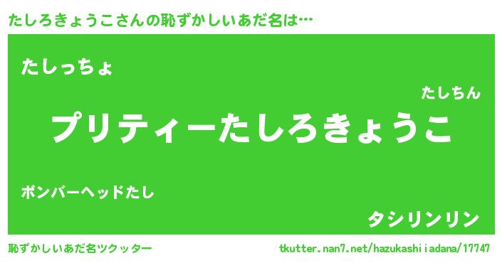 | 意味不明あだ名 | 『ペロリンたしろきょうこ』 |