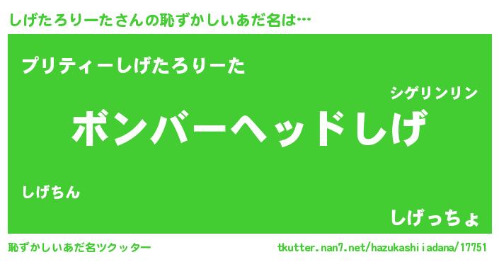 | ヒーロー風カッコイイあだ名 | 『正義の使者しげたろりーた』 |