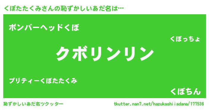 | ポケモン風あだ名 | 『ヒクボタタクミ』『クーボイ』 |