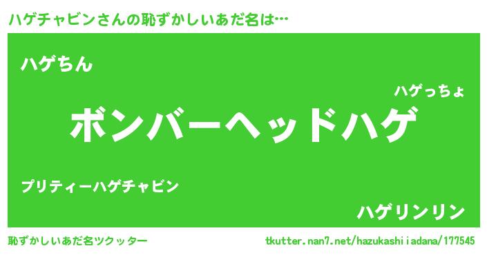 | ヘコむあだ名 | 『ハゲチャビン(小並感)』『ハゲお』 |