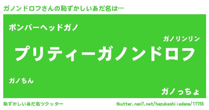 | 男性向けラノベタイトル風あだ名 | 『緋弾のガノンドロフ』 |