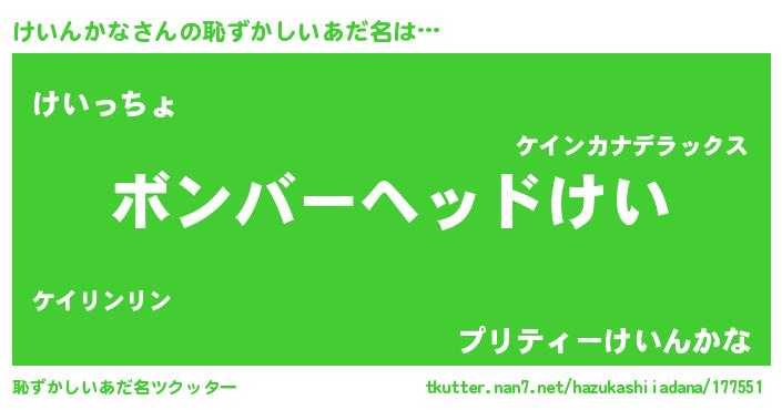 | 自動車の名前っぽいあだ名 | 『ケールスイイス』『ケンR』『ケクア』 |