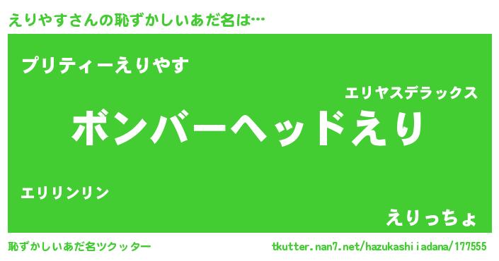 | ヒーロー風カッコイイあだ名 | 『正義の使者えりやす』『仮面エリダー』 |