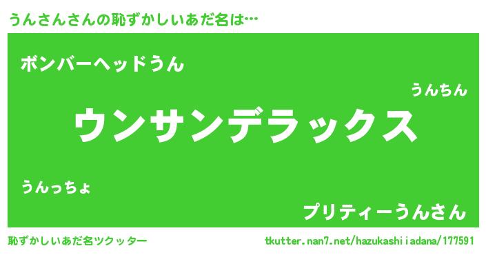 | 胡散臭い通販商品みたいなあだ名 | 『テレビで話題の高麗人参…その名も「うんさん」』 |