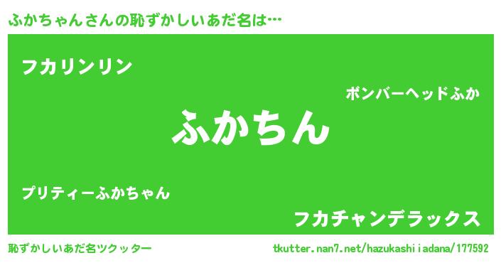 | ヘコむあだ名 | 『ふかちゃん(遠い目)』『ふかっぺ』 |
