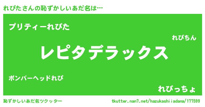 | 意味不明あだ名 | 『住所不定無職れぴた(13歳)』『自称れぴた』 |