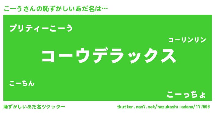 | 意味不明あだ名 | 『自称こーう』『ペロリンこーう』 |