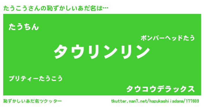 | ヒーロー風カッコイイあだ名 | 『銀牙騎士タウ』『ネオタウコウ』 |