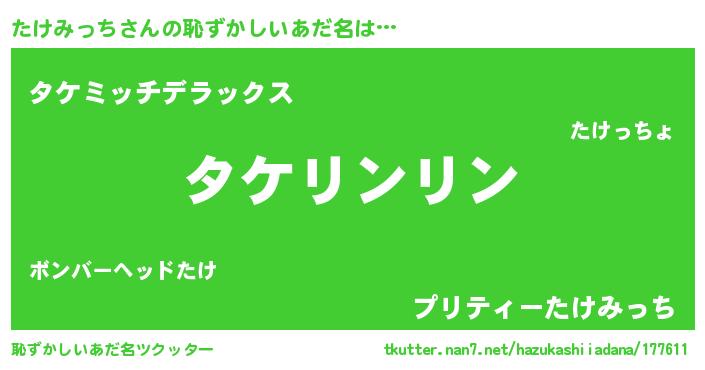 | ポケモン風あだ名 | 『ヒタケミッチ』『タケゴンZ』 |