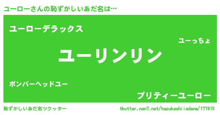 | ヘコむあだ名 | 『ユーぷりん』『ユーふぇ~』『豆乳』 |