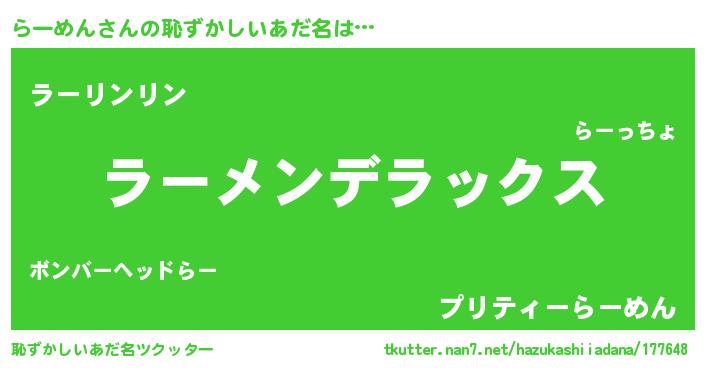 | 意味不明あだ名 | 『自称らーめん』『めかぶ科らーめん属』 |