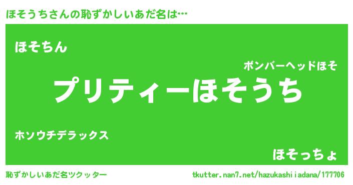 | ヘコむあだ名 | 『ほそにゅー』『ほそうち(笑)』 |