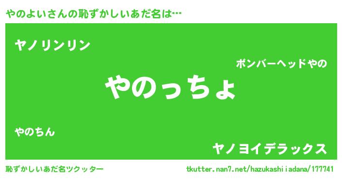 | 意味不明あだ名 | 『やのよいフォーエバー』『自称やのよい』 |