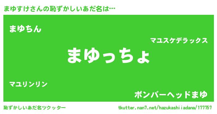 | 意味不明あだ名 | 『まゆすけフォーエバー』『自称まゆすけ』 |