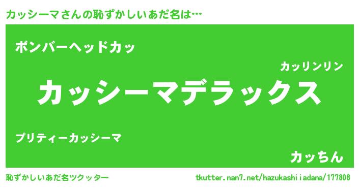 | 意味不明あだ名 | 『自称カッシーマ』『永久保存カッシーマ』 |