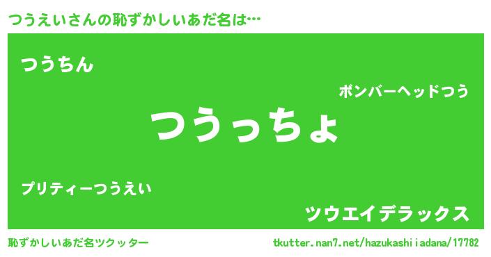 | 意味不明あだ名 | 『つうえいフォーエバー』『自称つうえい』 |