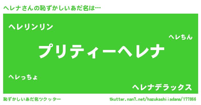 | ヒーロー風カッコイイあだ名 | 『仮面ヘレダー』『スーパーヘレナ』 |