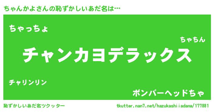 | 意味不明あだ名 | 『自称ちゃんかよ』『永久保存ちゃんかよ』 |