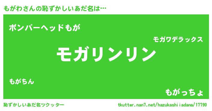 | ヘコむあだ名 | 『もがお』『牛乳』『もがわ(笑)』 |