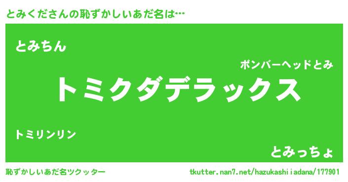 | 意味不明あだ名 | 『自称とみくだ』『永久保存とみくだ』 |