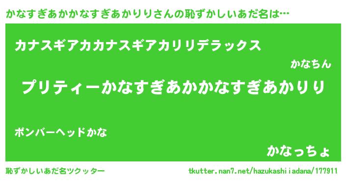 | 意味不明あだ名 | 『住所不定無職かなすぎあかかなすぎあかりり(8歳)』 |