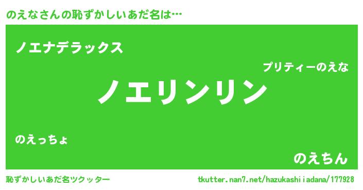 | ポケモン風あだ名 | 『ノエゴンZ』『ヒノエナ』『ノーエイ』 |