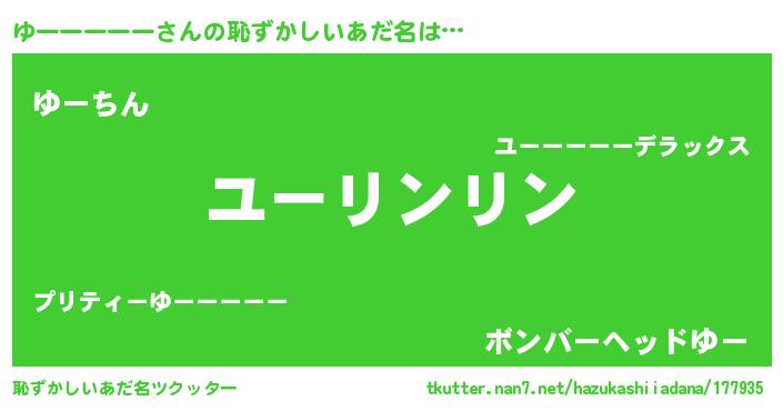 | 男性向けラノベタイトル風あだ名 | 『ゆーーーーーの嫁は女の子じゃないと思った?』 |
