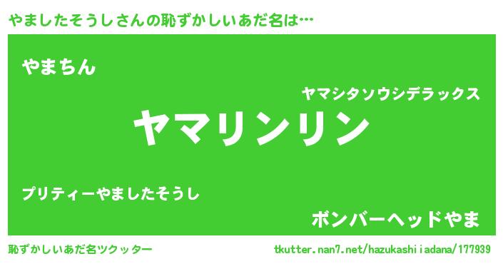 | 欧米人風あだ名 | 『アンジェラ・やましたそうし』 |