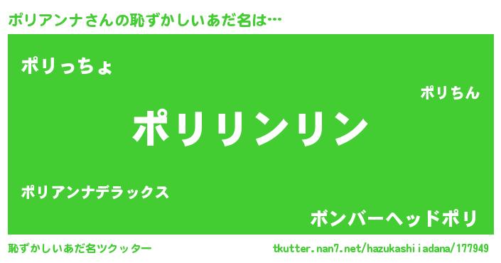 | 男性向けラノベタイトル風あだ名 | 『ポリアンナの嫁は女の子じゃないと思った?』 |