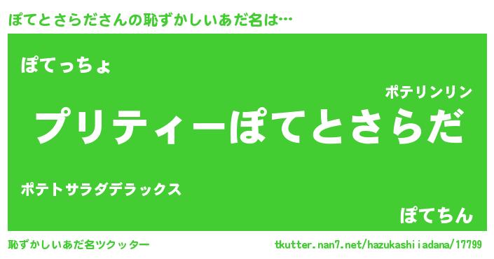 | 胡散臭い通販商品みたいなあだ名 | 『億万長者になれる霊験あらたかなお札…その名も「ぽてとさらだ」』 |