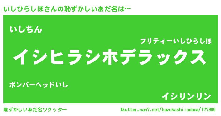 | ヒーロー風カッコイイあだ名 | 『最強戦士イシヒラシホ』『銀牙騎士イシ』 |