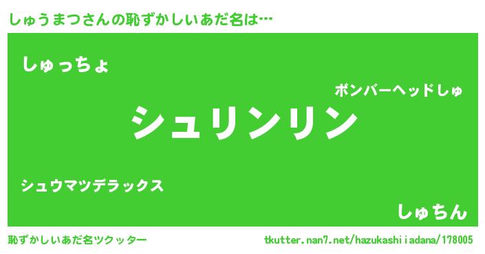 | 欧米人風あだ名 | 『ウサインしゅうまつ』 |