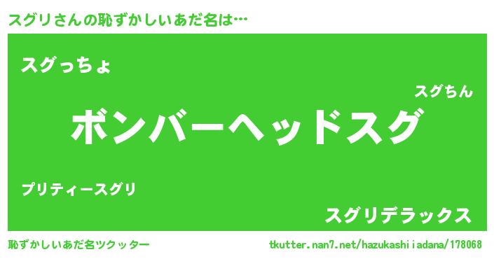 | ポケモン風あだ名 | 『スックウザ』『スグリダネ』 |