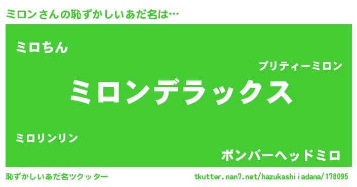 | 男性向けラノベタイトル風あだ名 | 『Re:ミロンから始める異世界生活』 |