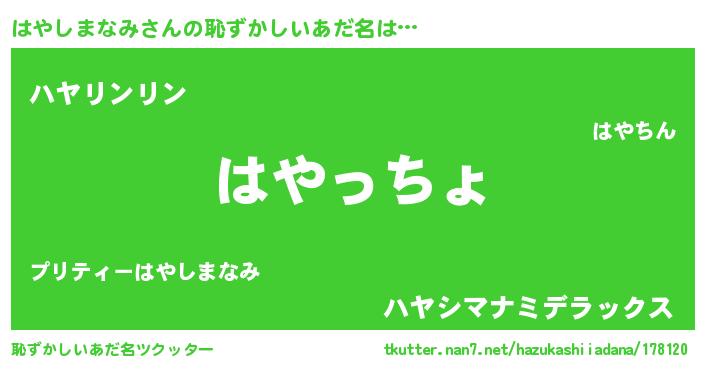 | ポケモン風あだ名 | 『ハヤシダネ』『ヒハヤシマナミ』 |