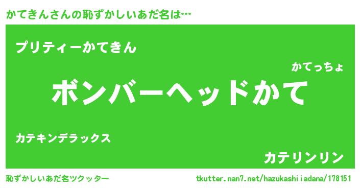 | ヒーロー風カッコイイあだ名 | 『慈愛の使者かてきん』『銀牙騎士カテ』 |