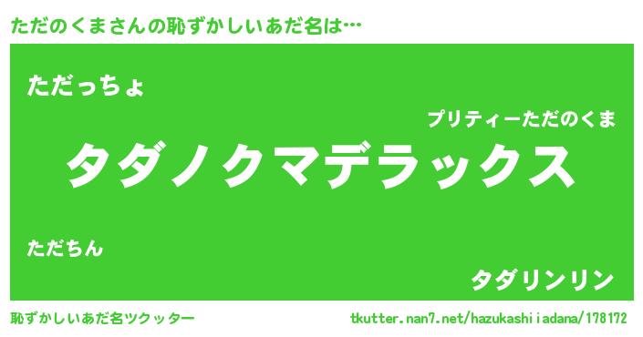 | 意味不明あだ名 | 『自称ただのくま』『ニラ科ただのくま属』 |