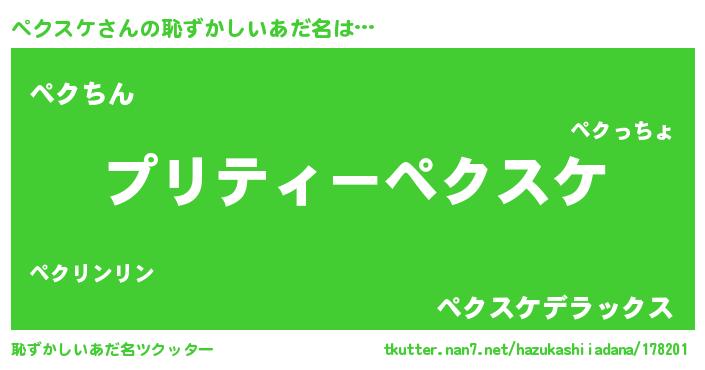 | 意味不明あだ名 | 『ペロリンペクスケ』『永久保存ペクスケ』 |
