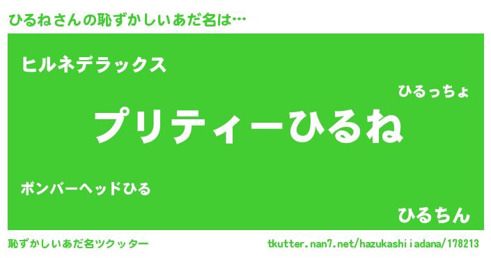 | ヘコむあだ名 | 『ひるっふぃ~』『ひるね(小並感)』 |