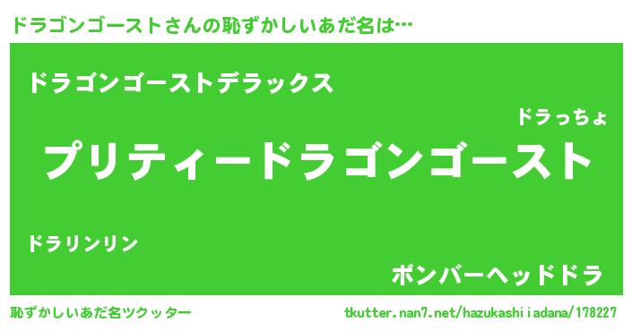 | 男性向けラノベタイトル風あだ名 | 『転生したらドラゴンゴーストだった件』 |