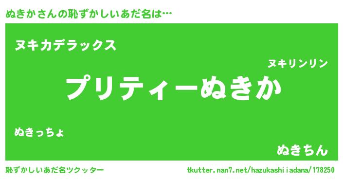| ヘコむあだ名 | 『ぬきもー』『ぬきか(遠い目)』 |
