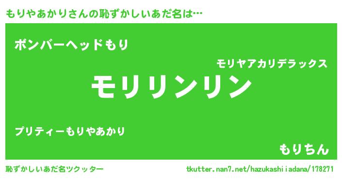| ヘコむあだ名 | 『もりぷりん』『もりやあかり(震え声)』 |