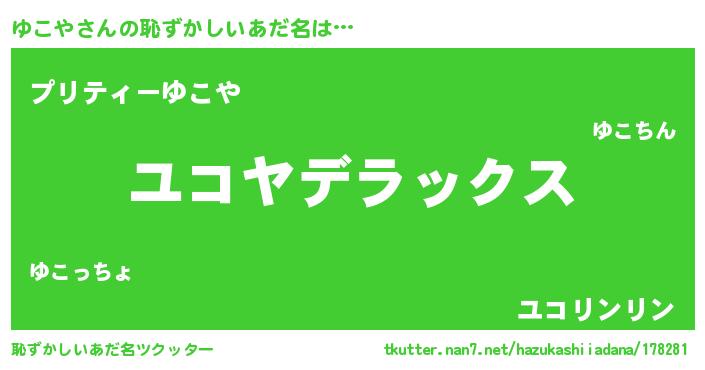 | 意味不明あだ名 | 『自称ゆこや』『ペロリンゆこや』 |