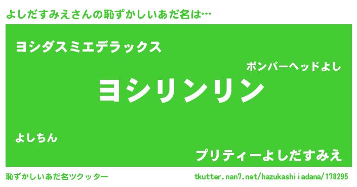 | 意味不明あだ名 | 『とにかく怪しいよしだすみえ』 |